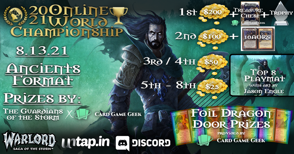 To pay homage to Warlord’s 20th Anniversary, we decided to take a tour through its various eras by playing one event for each of its original formats in chronological order. January was Saga Format (Saga of the Storm through Southern Kingdoms), February was Campaign Edition (Southern Kingdoms through Eye of the Storm), March was Epic Edition (Epic Edition through Light & Shadow), and the conclusion was May’s 4th Edition event (4th Edition through Ancient of Lore).