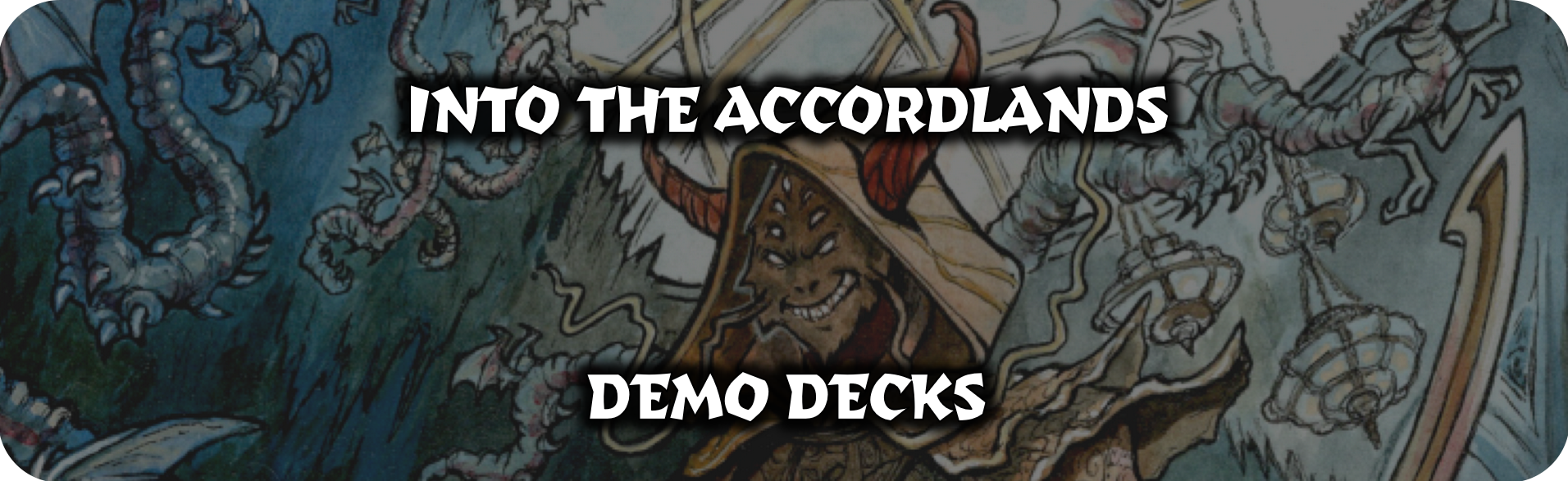 Some of the cards in these demo decks have been updated by Kingswood since their debut at GenCon ‘23. We will used the updated cards in those cases—they’re named in the lists below. Darkflame Bolts from the Elf deck is now called Grave Exchange.